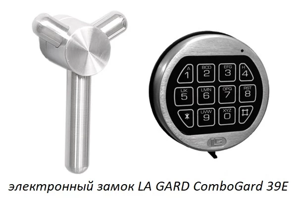 На сейф Paper Star Pro 1 EL установлен сертифицированный по зарубежным стандартам электронный замок компании La Gard (США), модель ComboGard 39E. Количество возможных кодовых комбинаций – до 1 млн. Дополнительные функции замка: защита от подбора кода, звуковые сигналы при низком заряде батареи, задержка открывания при неверном наборе, подсветка клавиатуры и т.д.